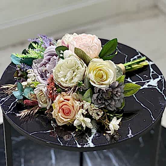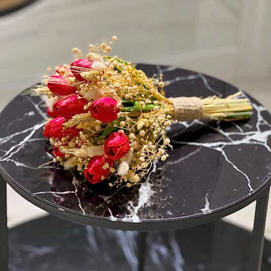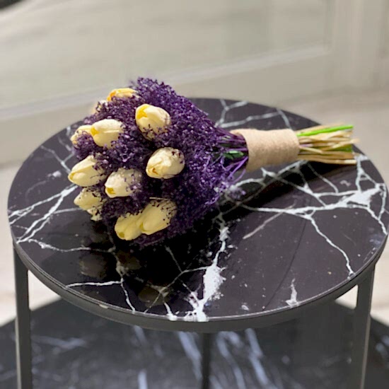 Kuru Çiçek ve Islak Lale Gelin Buketi