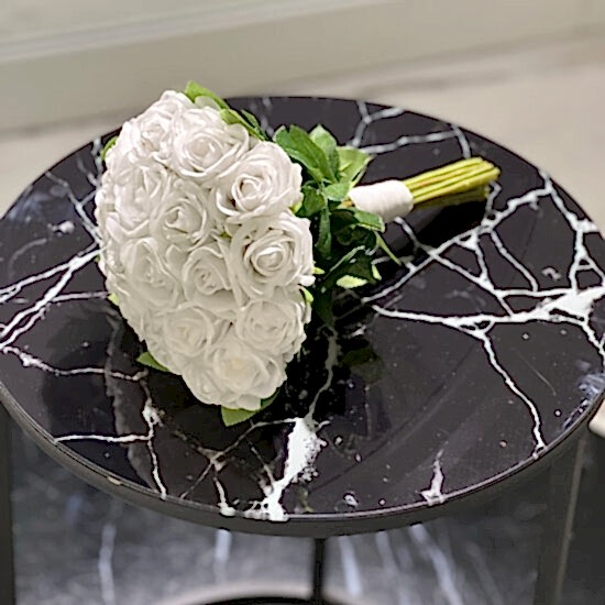 Beyaz Kadife Gül Gelin Buketi